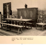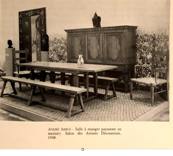 Les accotoirs, de section ronde, galbés et évasés s’amincissent en traversant l’assise et forment, en leur terminaison une fine pointe qui transperce le barreau d’entretoise du piétement.