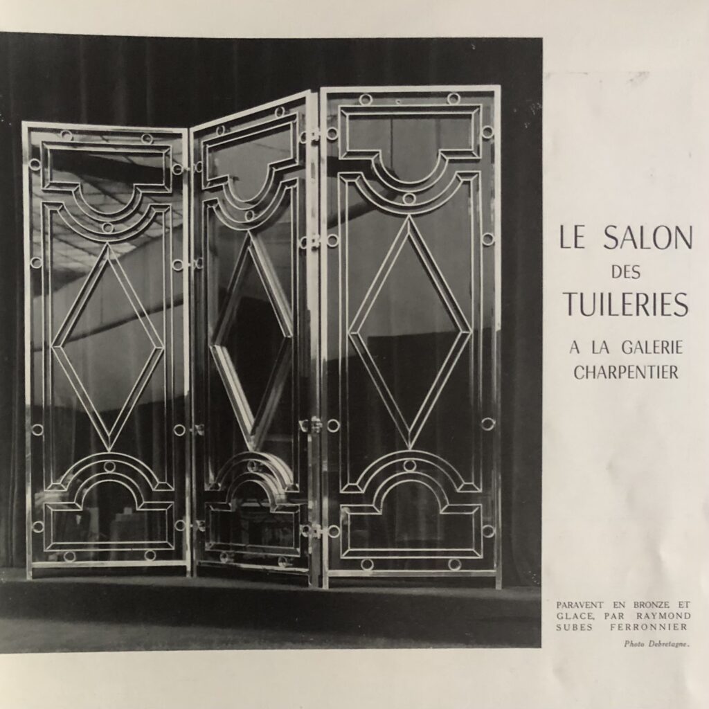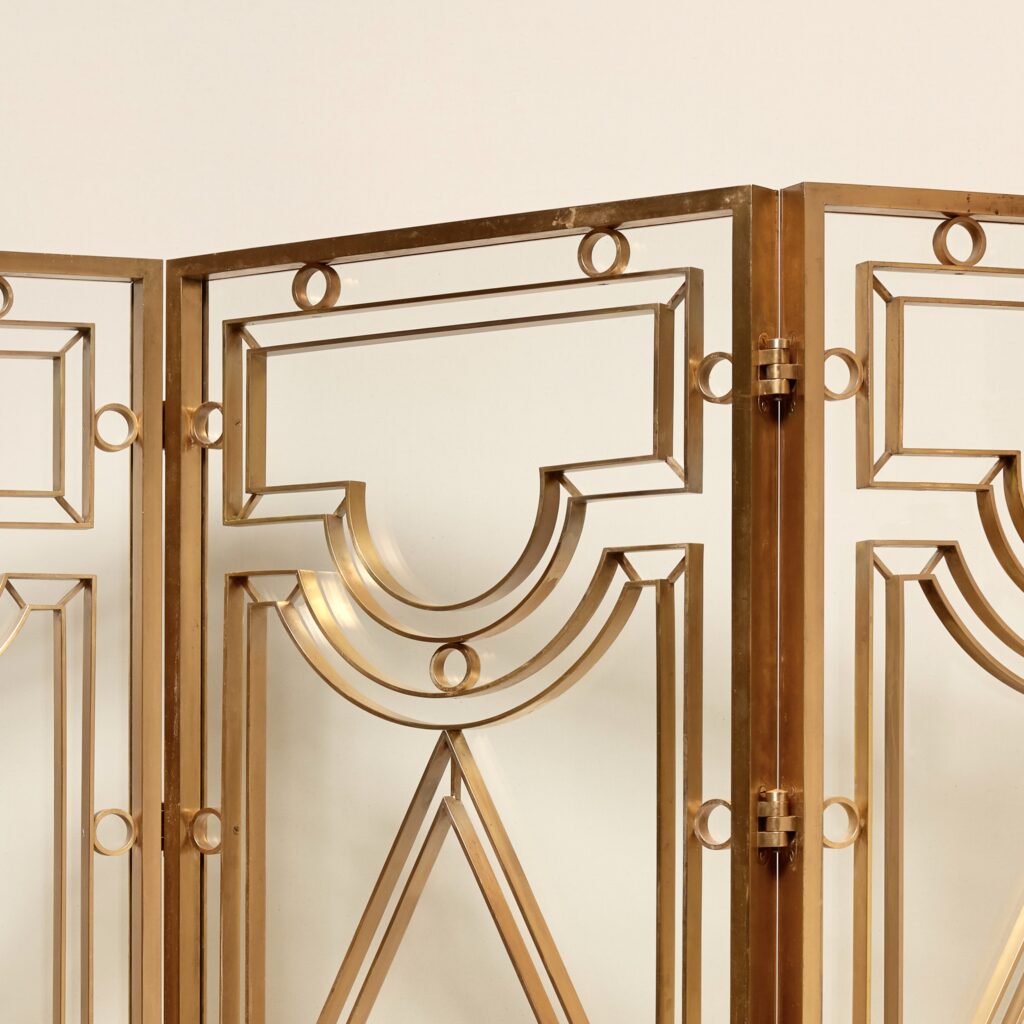 Paravent à trois feuilles, en bronze doré et verre, exposé aux Salon des Tuileries, galerie Charpentier, Paris, 1952